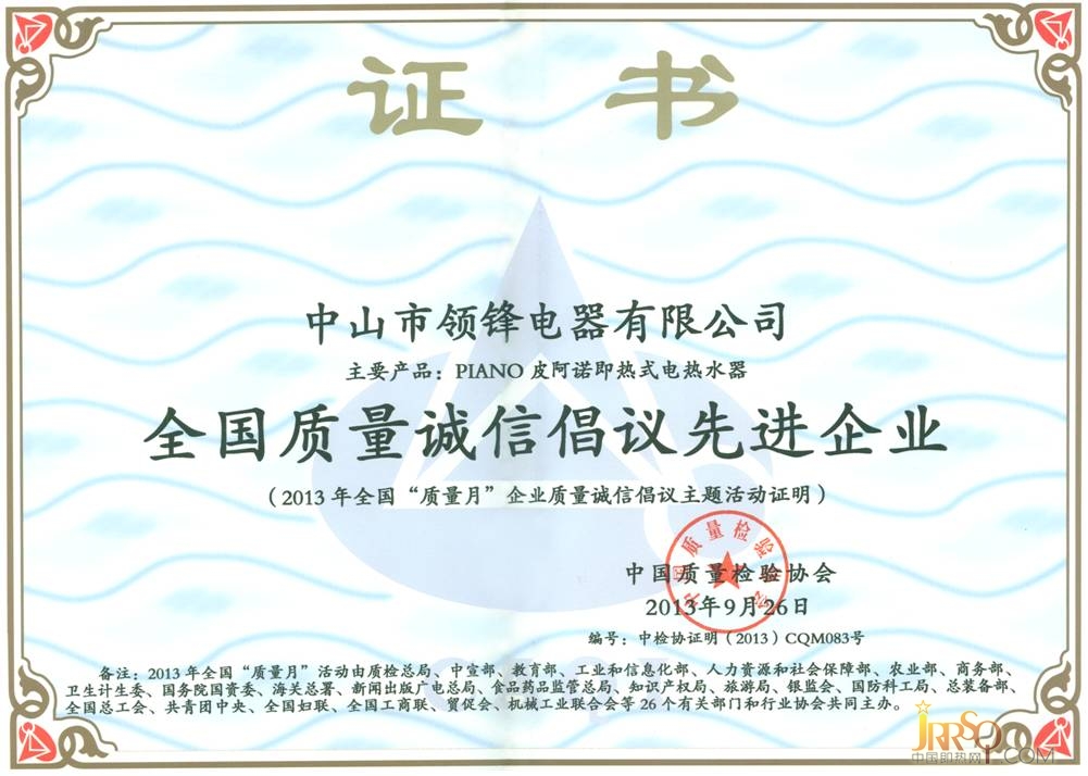 累累的荣誉既是社会各界对皮阿诺电器的肯定,也是鞭策皮阿诺电器继续为消费者提供最舒适、最安全、最节能产品和最优质服务的动力。皮阿诺电器将不会辜负社会各界的期待,主动挑起社会责任重担,累积点滴改进,迈向完美品质,以技术革新,更好的服务于社会和消费者,努力将皮阿诺电器打造成中国热水器第一品牌。皮阿诺电器还将与社会各界同仁携手共进,共同推进质量强国建设,不断提升“中国制造”的良好形象,携手实现中国的质量强国梦。